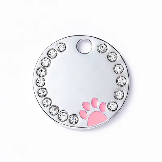 Médaille pour chien ou chat personnalisable avec strass et empreinte de couleur